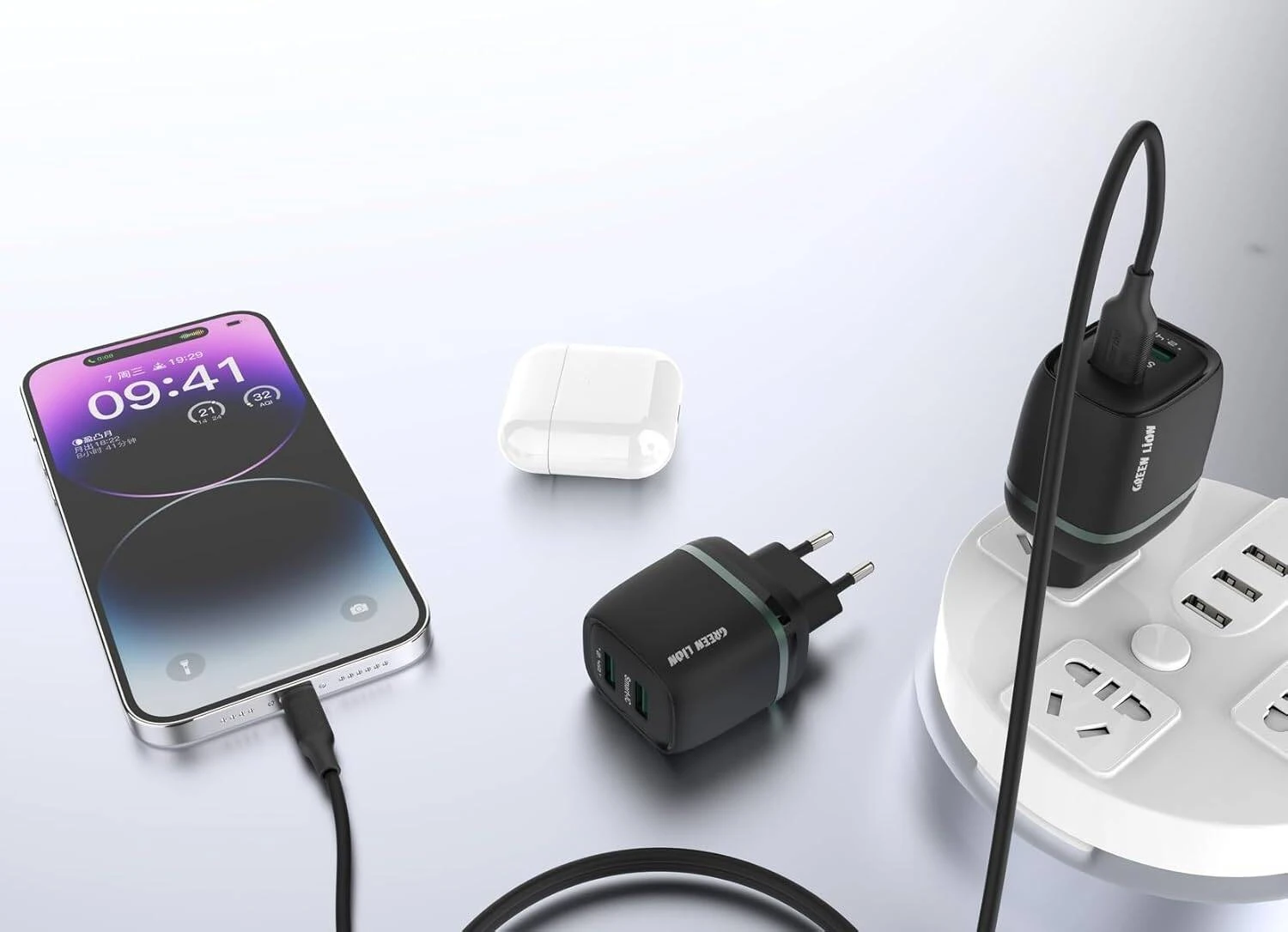 Presenting the Green Lion Dual USB 12W Wall Charger with USB-A to Micro Cable (1M) : efficient and convenient charging of all your devices. This is a wall charger with a dual USB design that can charge two devices simultaneously with powerful, fast charging at 2.4A to ensure that your devices get the power in record time. It comes with a flexible USB-A to Micro 1 Meter PVC cable that makes connections between your devices real quick and easy without necessarily getting tied to the wall. Since charging protection is built in, you can ensure your device is well-guarded against overcharging and short circuits. This product also supports dual-layer charging with optimizations in its software for performance and durability. With the addition of USB-C, however, it's ready for a wide array of devices. Get fast, safe, and efficient charging with the Green Lion Dual USB Wall Charger, ideal for home and on-the-go use.