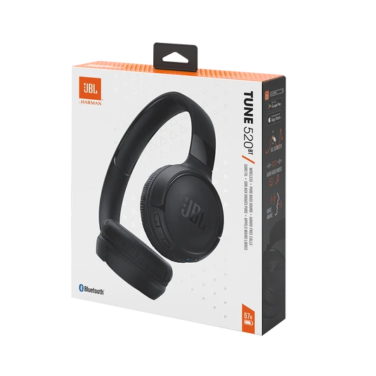 The JBL Tune 520BT headphones stream powerful JBL Pure Bass sound thanks to the latest 5.3 BT technology. Easy to use, these headphones provide up to 57 hours of pure pleasure and an extra 3 hours of battery with just 5 minutes of charge. Download the free JBL Headphones App and customize your sound through the EQ, while Voice Prompts guide you through the headphones features. Manage calls, sound and volume from the earcup, thanks to the convenient button control. If a call comes in while you are watching a video on another device, the JBL Tune 520BT seamlessly switches to your mobile device, so you never miss a call. Lightweight and comfortable even after hours of listening, the JBL Tune 520BT headphones fold flat in your backpack to follow you everywhere. General Specifications