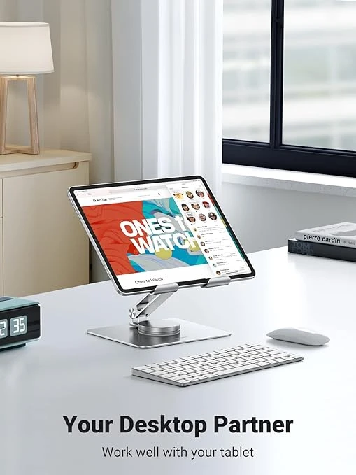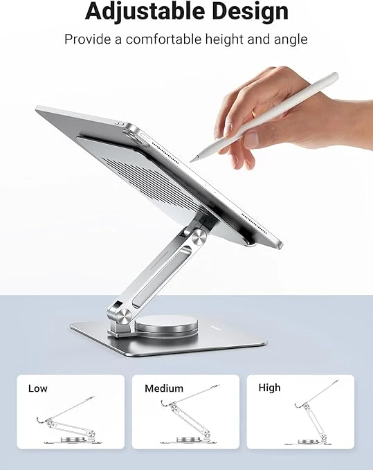 【Stable and Sturdy】Metal laptop stand made of durable, metal stand and non-slip rubber surface pads to keep your laptop secure and stable. Rubber footing to prevent slippage and scratch damage to tables or desks. Laptop stand for desk is both great for propping up your laptop or tablet and providing exceptional stability to them. It won't shake or move when you type on your devices.