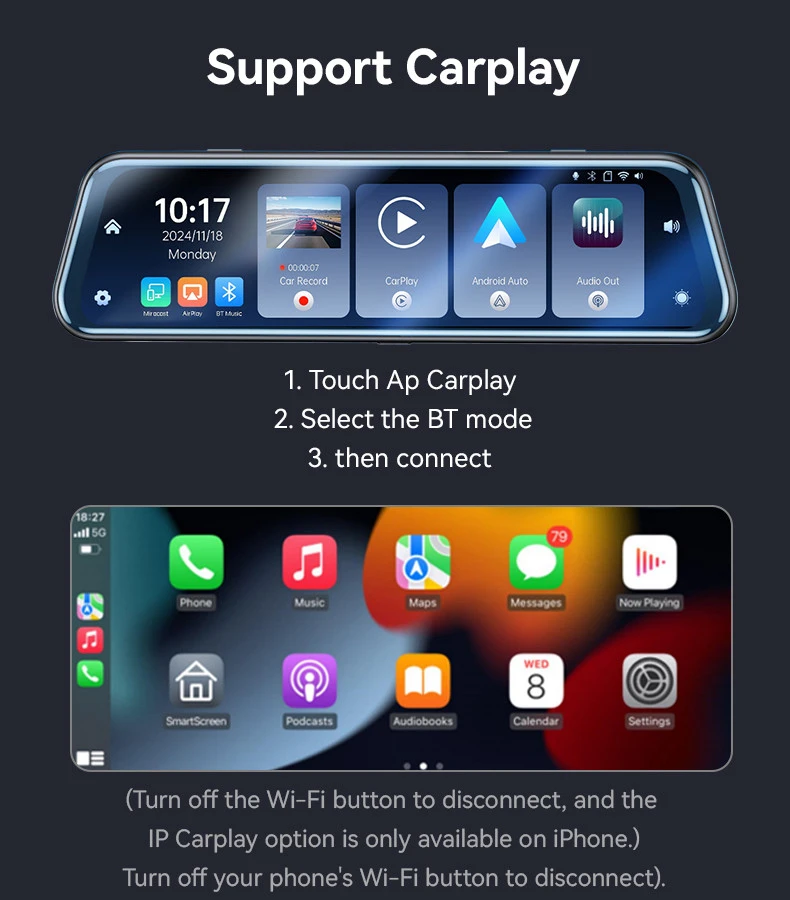 Yesido KM24 9.66 Inches Car RearView Carplay