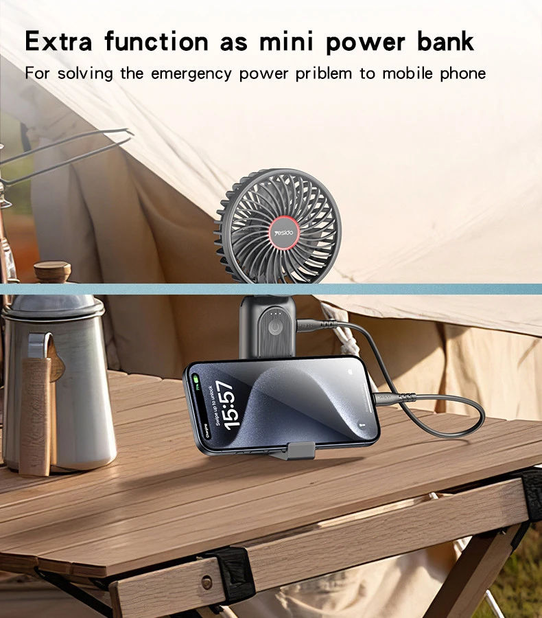 Yesido 3 Stages Of Speed With Big Battery As Mini Power Bank More Easily Using Portable Mini Fan.