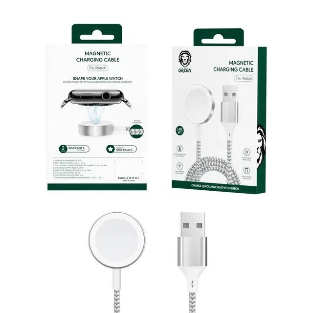 This Green Lion Magnetic Braided Charging Cable comes with a powerful N45 magnetic charging cable cord and pad for the iWatch series. The magnetic adsorption process is easy to follow; simply place the watch near it, and the charging process begins.