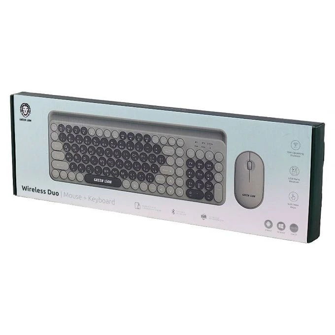 The Green Lion Wireless Duo Keyboard Mouse Grey set is a modern and efficient wireless input solution designed for comfortable daily use at home, office, or on the go. This combo includes a compact wireless keyboard and a minimalist wireless mouse, both finished in an elegant grey color that complements contemporary workspaces. The keyboard features distinctive round-type keycaps that enhance typing speed while adding a stylish and ergonomic touch. Built for durability, the keys are rated for up to 30 million keystrokes, ensuring long-lasting performance. The wireless mouse is designed with soft-press buttons and a silent clicking mechanism, making it ideal for quiet office environments, and offers a lifespan of up to 5 million clicks. Both devices connect via a wireless nano USB receiver, providing a stable connection with an operating range of up to 10 meters. With cross-platform compatibility for Windows, Mac, and Android devices, this duo supports flexible usage across computers, tablets, and phones. Combining durability, comfort, and a clean minimalist design, the Green Lion Wireless Duo delivers reliable performance and everyday convenience.