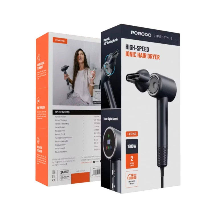 Porodo Lifestvle 1600W Digital Hair Drver with Adiustable Mode & Speed - Black