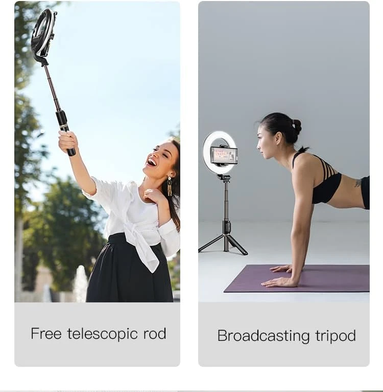 Bluetooth remote control tripod selfie stick with ring fill light
